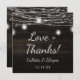 Oak Ridge Rustic Mörk Brown Barn Wood, Sparkling Mason Burk och Glowing String Ljus Design with Twinkling strands of dangling ljus and burk on a deep rik wood struktur med vita accents. Med Typsnitt för modern typografi. En rustik elegant land-jordbrukshus stil-design - Personlig Bröllop Kärlek och tack på-torget - tack på ditt kort! ~ Kolla min butik för att se hela bröllop-svit för den här designen!