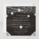 Oak Ridge Rustic Mörk Brown Barn Wood, Sparkling Mason Burk och Glowing String Ljus Design with Twinkling strands of dangling ljus and burk on a deep rik wood struktur med vita accents från Snöre. Med Typsnitt för modern typografi. En plan för jordbrukshuset i land i elegant - inbjudan till Bröllop i Personlig! ~ Kolla min butik för att se hela bröllop-svit för den här designen!