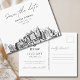 Modern Oakland svart-vit spara-datum-vykort inbjudan på matpapper. Framsidan visar en fantastisk skiss som sätter tonen för din bröllopsdag. Lägg till anpassad text för att göra den till din egen. Gå in i Zazzles designverktyg för ytterligare designanpassningar. Kommer automatiskt på matpapper. Justera till halvblank om du föredrar det.