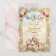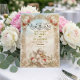Tillkännage ditt "Paradis på jorden" med denna överdådiga barockdesign. En storslagen, romantisk introduktion för par som söker gammaldags elegans och drama. Denna design har en rik, maximalistisk komposition inspirerad av 1700-talets konst. En detaljerad falsk guldtrådram med akantusblad omger en tryckt krämfärgad marmorerad bakgrund. Överst spelar en ängel på fiol bredvid två vita duvor mot en drömlik, molnig himmel. De nedre hörnen förankras av djupt karmosinröda och vita rosor sammanflätade med grön murgröna. Texten presenteras i formell svart kalligrafi och klassiska serif-typsnitt. Detta är en platt tryckt bild med en högupplöst falsk guld- och marmoreffekt, inte fakt