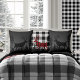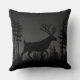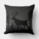 En dekorativ kudde med en svart silhuett av en stor hjort med horn i en lugn skog med tallträd, med olika bakgrundsfärger. Se dem alla i kollektionen.