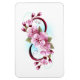 Symbol för oändlighet med blommor och löv av blåsande sakura-blommar mot ljusbakgrund, målade med blå färg. Oändlighetssymbolen. Sakura-blommar. Tatto stil. Hanami