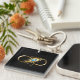 Guld, glansig symbol för oändlighet, dekorerad med smycken pålfjäder med turkos på svart bakgrund.