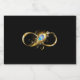 Guld, glansig symbol för oändlighet, dekorerad med smycken pålfjäder med turkos på svart bakgrund.