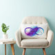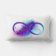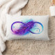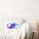 Oändlighetssymbol med en vacker fjäder målad i lila och blå ljusa färger på vit bakgrund.