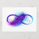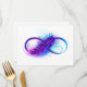 Oändlighetssymbol med en vacker fjäder målad i lila och blå ljusa färger på vit bakgrund.