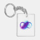 Oändlighetssymbol med en vacker ludd som är målad i lila och blå ljusa färger på vit bakgrund.