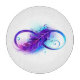 Oändlighetssymbol med en vacker ludd som är målad i lila och blå ljusa färger på vit bakgrund.