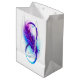 Oändlighetssymbol med en vacker ludd som är målad i lila och blå ljusa färger på vit bakgrund.