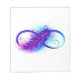 Oändlighetssymbol med en vacker ludd som är målad i lila och blå ljusa färger på vit bakgrund.