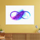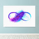 Oändlighetssymbol med en vacker ludd som är målad i lila och blå ljusa färger på vit bakgrund.