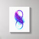 Oändlighetssymbol med en vacker ludd som är målad i lila och blå ljusa färger på vit bakgrund.