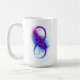 Oändlighetssymbol med en vacker ludd som är målad i lila och blå ljusa färger på vit bakgrund.