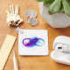 Oändlighetssymbol med en vacker ludd som är målad i lila och blå ljusa färger på vit bakgrund.