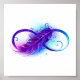 Oändlighetssymbol med en vacker ludd som är målad i lila och blå ljusa färger på vit bakgrund.