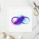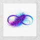 Oändlighetssymbol med en vacker ludd som är målad i lila och blå ljusa färger på vit bakgrund.