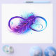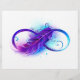 Oändlighetssymbol med en vacker ludd som är målad i lila och blå ljusa färger på vit bakgrund.