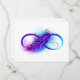 Oändlighetssymbol med en vacker ludd som är målad i lila och blå ljusa färger på vit bakgrund.