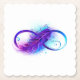 Oändlighetssymbol med en vacker ludd som är målad i lila och blå ljusa färger på vit bakgrund.