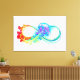 Oändlighetssymbol för multifärgad med regnbåge, ljusgula, dekorerat med långa tentakler på vit bakgrund. Regnbågsnäcka.