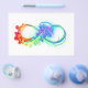 Oändlighetssymbol för multifärgad med regnbåge, ljusgula, dekorerat med långa tentakler på vit bakgrund. Regnbågsnäcka.