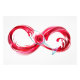 Oändlighetssymbol för kontinuerlig strömning av rött vin som strömmar in i glas vin på vit bakgrund.