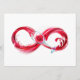 Oändlighetssymbol för kontinuerlig strömning av rött vin som strömmar in i glas vin på vit bakgrund.