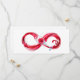 Oändlighetssymbol för kontinuerlig strömning av rött vin som strömmar in i glas vin på vit bakgrund.