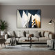 En lek av ljus och skugga förvandlar geometriska former till abstrakta skyskrapor. Kontrasten mellan vitt, svart och guld skapar djup och rörelse, som en futuristisk horisont som utmanar perceptionens gränser.