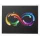 Oändlighetssymbolen är konstnärligt målad med snabba, ljusa, lysande regnbågsfärgade kometer med långa flexibla svansar på svart bakgrund. Regnbågens oändlighet.