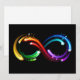 Oändlighetssymbolen är konstnärligt målad med snabba, ljusa, lysande regnbågsfärgade kometer med långa flexibla svansar på svart bakgrund. Regnbågens oändlighet.
