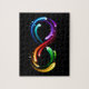 Oändlighetssymbolen är konstnärligt målad med snabba, ljusa, lysande regnbågsfärgade kometer med långa flexibla svansar på svart bakgrund. Regnbågens oändlighet.