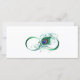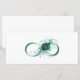 Oändlighetssymbolen med en ljus, grön, konstnärlig påfågelsfjäder på vit bakgrund. Tatueringstil.