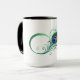 Oändlighetssymbolen med en ljus, grönt, konstnärlig påfågelfjäder på vit bakgrund. Tatto stil.