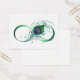 Oändlighetssymbolen med en ljus, grönt, konstnärlig påfågelfjäder på vit bakgrund. Tatto stil.