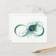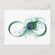 Oändlighetssymbolen med en ljus, grönt, konstnärlig påfågelfjäder på vit bakgrund. Tatto stil.