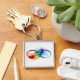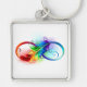 Oändlighetssymbol med regnbåge med ludd fyrkantig silverfärgad nyckelring