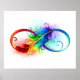Artiskt ritad oändlighetssymbol med vacker regnbåge på vit bakgrund. Tatto stil.