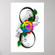 Oändlighetssymbol med regnbåge ro på vit bakgrund.