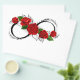 oändlighetssymbol med röda rosor och svarta stjälkar på vit bakgrund. Design med rosor. Tatuering stil. Gotisk stil. Tribal grafik. Stil skiss.