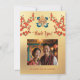 Det tibetanska Bröllop-kortet har en ändlös knut i guld, röda blommar för körsbär och ditt foto på en gyllene bakgrund. Matchande bröllopsinbjudan finns tillgänglig.