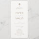 OASIS Beach, bröllopsprogram. Funktioner, taupe- och sandbeige-typografi med handflatan träd illustrationsdetaljer.