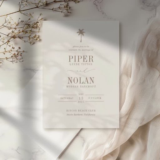 OASIS Palm Tree Taupe Wedding Inbjudningar