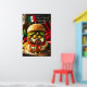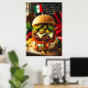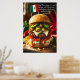 Upplev en värmevåg av smak med denna munsande Oaxaca Chipotle Burger. Ett spaltat nötköttsslag, som är färdigt för safärgad finfördelning, fylls med smält Oaxaca-ost, rostad jalapeños, ett generöst drizzle av chipotle mayo och färska avokado-skivor. Alla staplade högt på en maj-dammad bun. En liten mexikansk flagga tillför en festlig beröring, medan en suddig bakgrund av chilipeppar och färsk cilantro fullbordar detta mexikanska kulinariska skapelse.