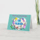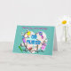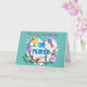 Ett kort för OB-sjuksköterska med baby-grafik och OB-sjuksköterska med verktyg på ett ljusblått kort.
