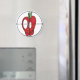 Förvandla kylskåpet till ett metall monster med OBA: s röda logotyp för äppelskalle.