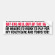 VITBILDEKAL MED RÖD OCH SVART BOKSTÄVER. FÖRSE MED TEXTNÅGOT ATT SÄGA: FÅ HELVETET AVLÄGSEN, IM HÖVDAT TILL ARBETE FÖR ATT BETALA FÖR MIN HEATHCARE OCH DIN FÖR! BAKGRUNDEN HAR "OBAMA" I STORT DJÄRVT LJUST - grå färgBREV.