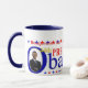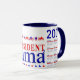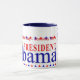 Röd vit och blått planlägger med presidenten Obama, och kalender 2009 dekorerar denna jubileums- minnessakmugg.