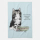En söt maine coon tabbe med kattunge i bakgrunden till blått som vill bli matat men är häftigt oberoende