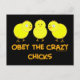 "Obey the Crazy Chicks". Tre små gulter chickar med ett roligt ordspråk.